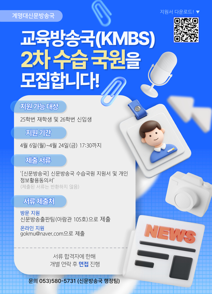 신문방송국에서 2026학년도 수습기자 및 국원을 2차 모집합니다.