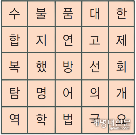 2. □□□□은 우리 학교 동산도서관이 소장한 고문헌을 통해 역사와 문화를 조명하는 전시 프로그램이다. (힌트: 8면)