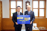지난 9월 10일, 행소관에서 백순현 대외협력처장과 신일희 총장이 ‘계명더하기 장학금’ 전달식을 가졌다. 계명더하기 장학금은 기부자의 기부 금액과 동일한 규모의 학교 측 장학금을 더해 장학기금을 마련하는 제도다. 백순현 처장이 기부한 금액은 5천만 원으로, 학교가 5천만 원을 추가 매칭해 총 1억 원 규모의 장학금을 마련했다. 해당 장학금은 ‘지광(智光) 장학금’으로 명명돼 운영된다. 전 산업디자인과 교수였던 백순현 처장은 “교수로서 제자들이 성장하는 모습을 보며 항상 큰 보람을 느꼈다.”며 “어려운 환경 속에서 꿈을 포기하는 학생들이 없도록 작은 힘을 보태고자 했다.”고 기부 소감을 밝혔다. 한편 우리학교는 2021년부터 ‘계명더하기 장학금 모금 사업’을 운영하며 5천만 원 이상의 장학기금을 기부한 이들의 뜻을 기리고 있다. 현재까지 교직원, 동문 등 24명이 참여해 30억 원의 자금이 모였으며, 매칭 자금을 더해 총 60억 원이 교내 장학기금으로 활용되고 있다. 마련된 장학금은 학생들에게 등록금, 학업 장려비 및 생활비 등의 형태로 지급될 예정이다.